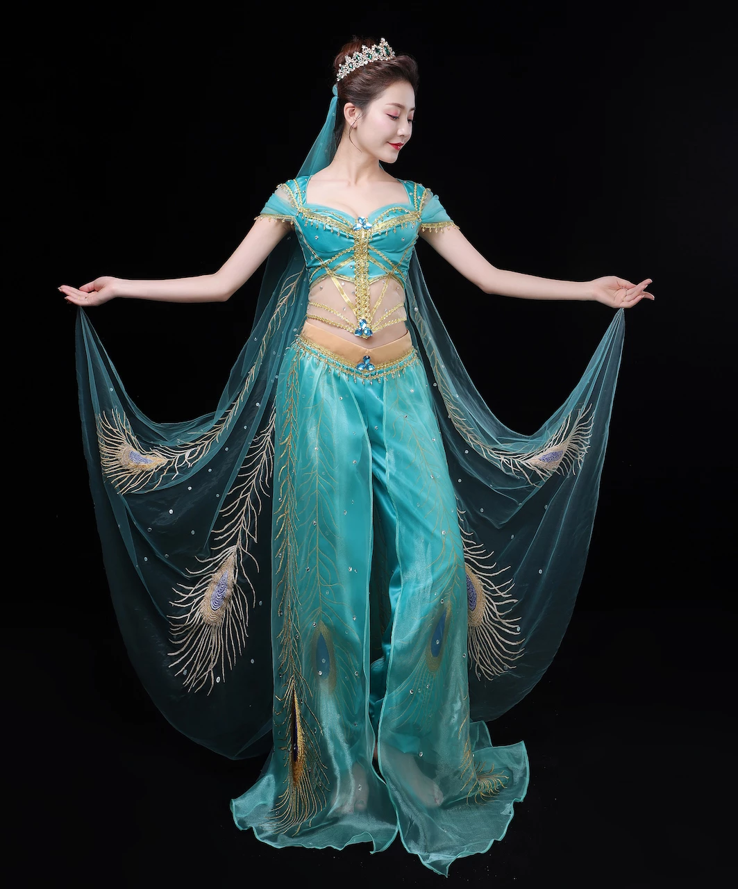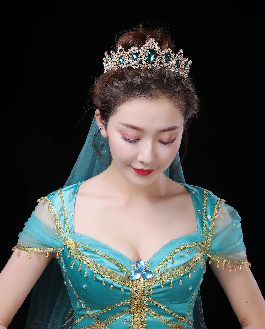 2020 Movie Aladdin Princess Jasmine Green Suit Cosplay Costume