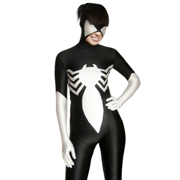Black And White Spider Lycra Spandex Zentai Suit
